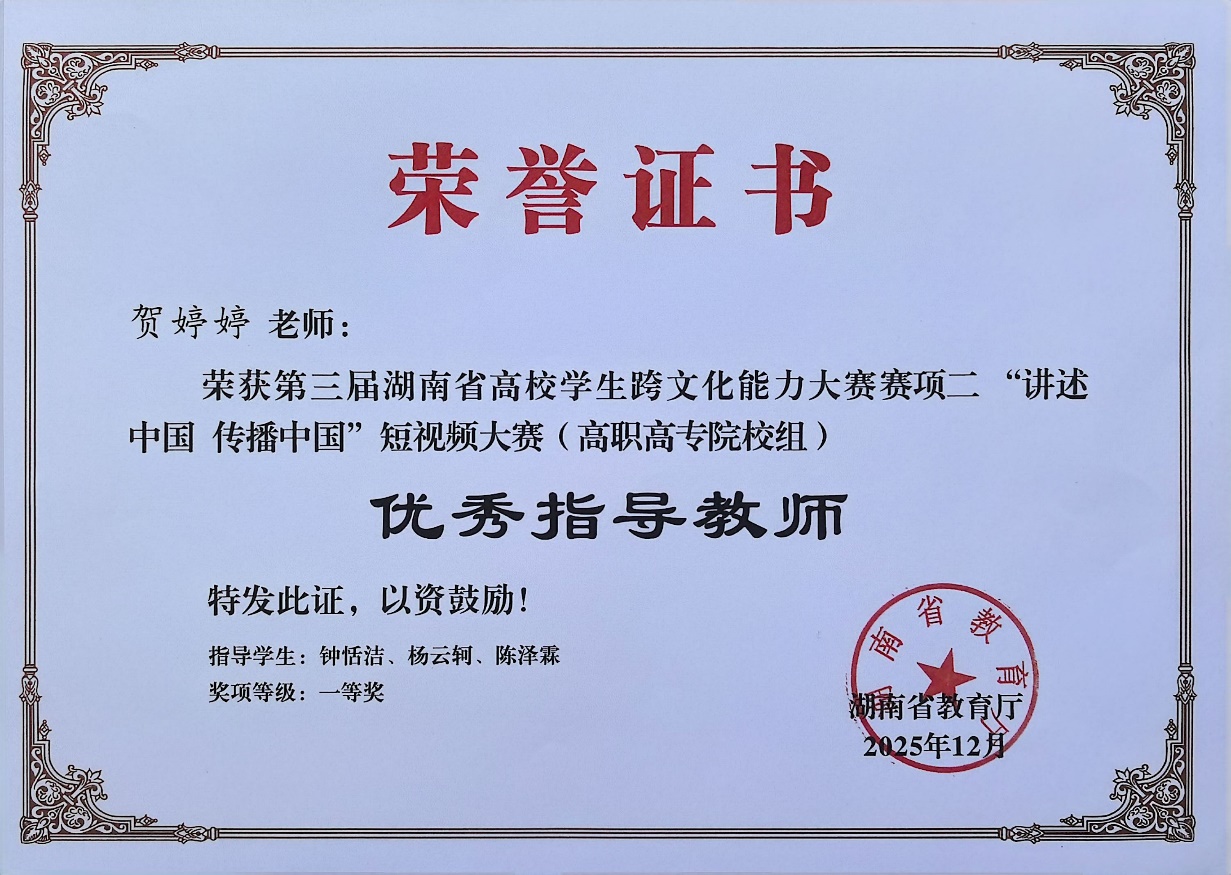 在近期结束的第八届“外教社杯”全国高校学生跨文化能力大赛“讲述中国 传播中国”短视频大赛全国总决赛…【查看】