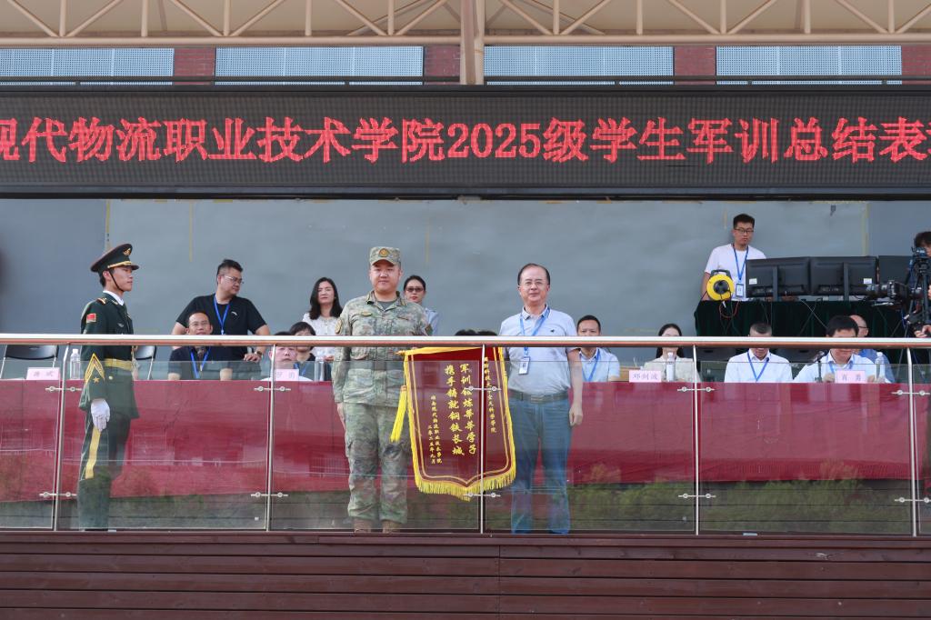 成果展示结束后,罗勇宣读《关于2025级学生的奖励决定》和《关于表彰2025级新生军训优秀集体和先进个人的决定》,与会校领导共同为获奖的集体和个人代表颁发了奖牌和荣誉证书。邓剑波代表学校向承训部队赠送锦旗,对全体教官在军训期间的辛勤付出、严格施训和卓越成效表示高度肯定与衷心感谢。