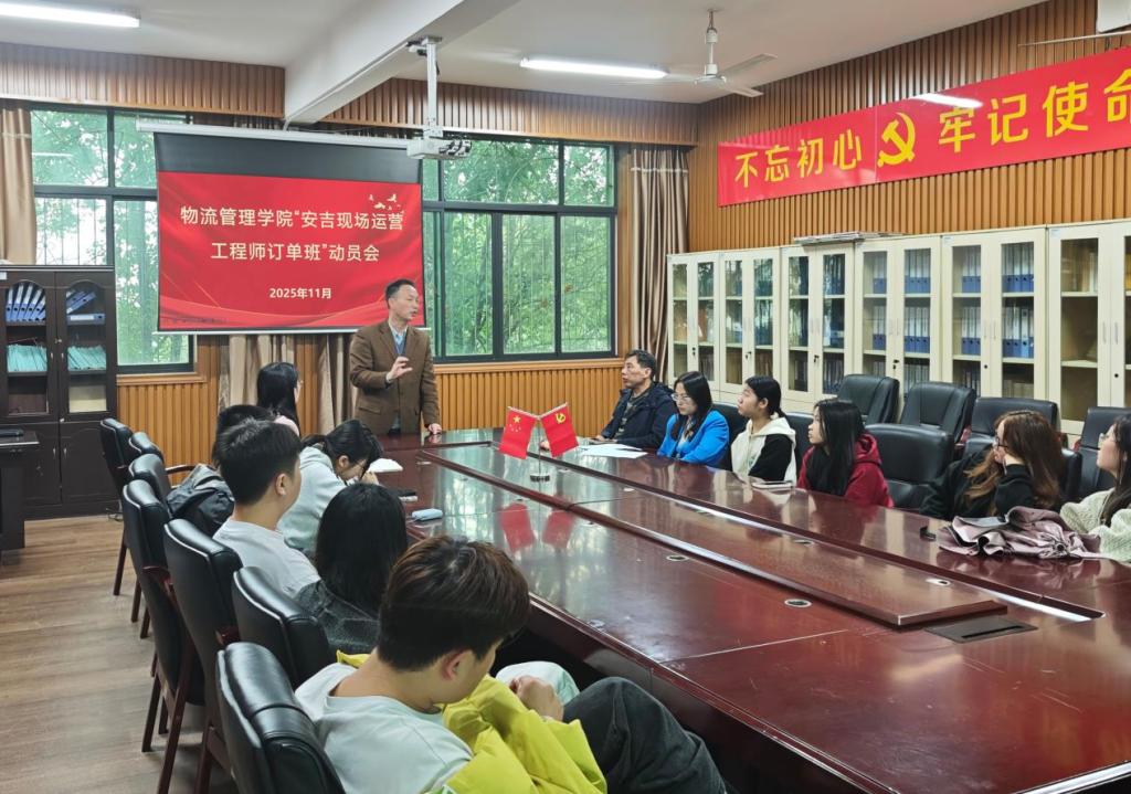 为深化产教融合、创新订单式人才培养模式,11月3日,物流管理学院召开安吉现场运营工程师订单班动员会,近日该批学生将赴安吉智行物流(苏州)有限公司开展集中实习。学校党委委员、副校长罗勇出席会议,物流管理学院党总支书记李志红,副院长谭新明、曾恋之及相关专业辅导员参加。