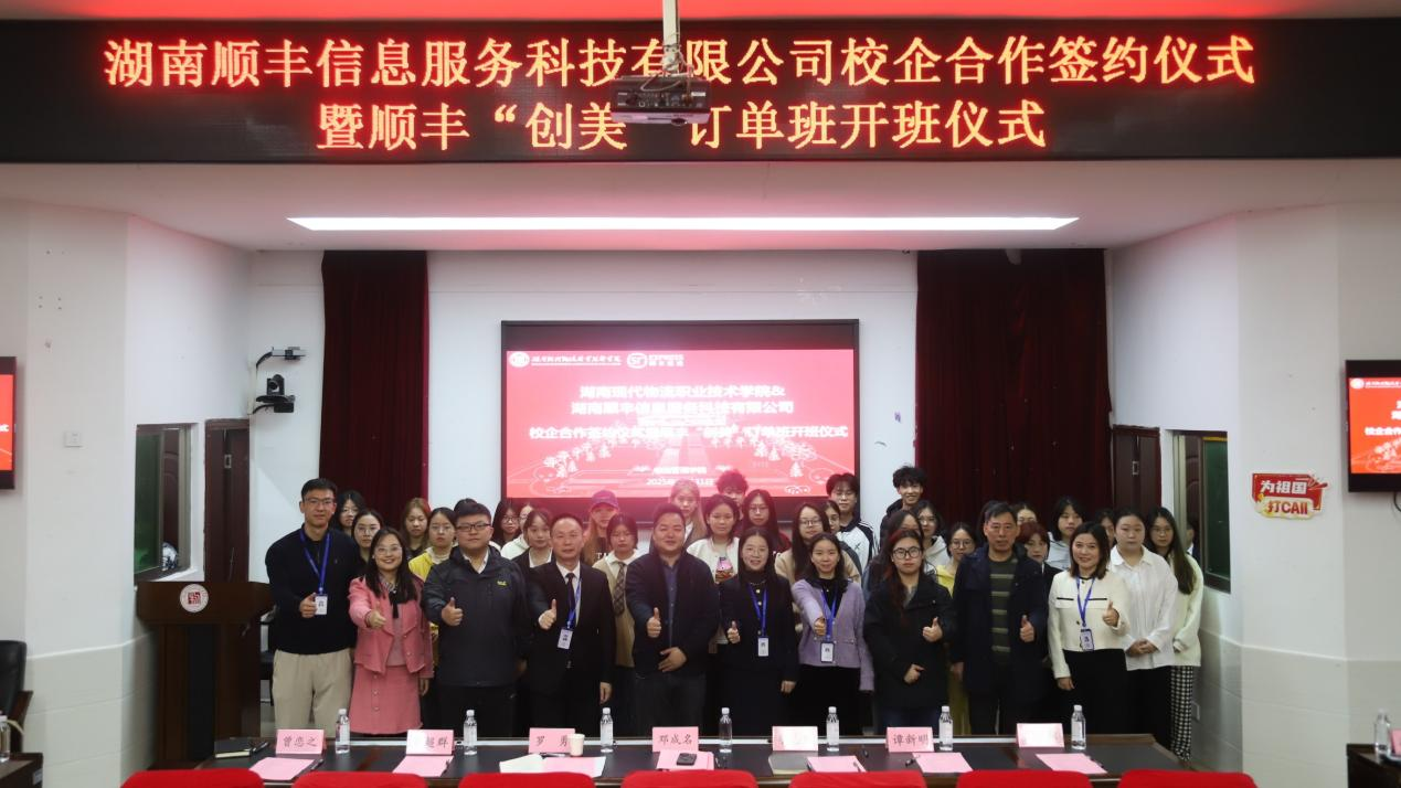 10月31日,我校与湖南顺丰信息服务科技有限公司校企合作签约仪式暨顺丰“创美”订单班开班仪式在学校学术报告厅举行。学校党委委员、副校长罗勇,物流管理学院党总支书记李志红,副院长谭新明、曾恋之、冯梅,党总支副书记李振,班主任张梦雪,湖南顺丰信息服务科技有限公司人力资源总监邓成名、招聘经理李超群、班主任王朝阳等出席仪式,与订单班全体学生及25级快递创美协会成员共同见证了这一重要时刻。