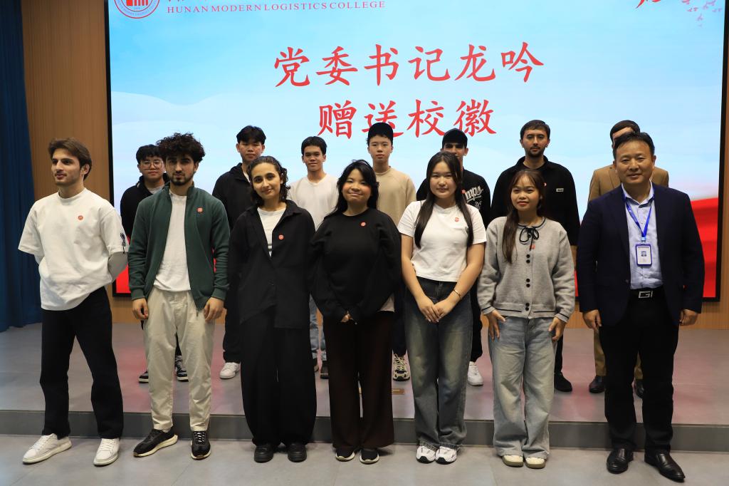 活动期间,龙吟为留学生代表佩戴校徽,罗勇、肖勇共同发放校庆纪念品。本次见面会在全体合影中圆满落幕,现场气氛温馨热烈。