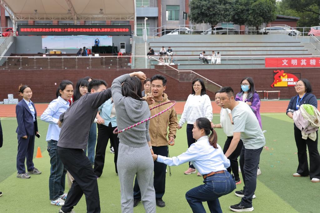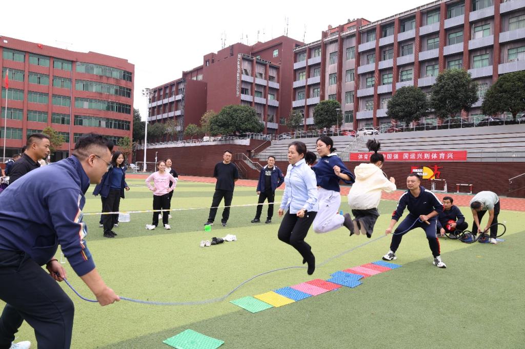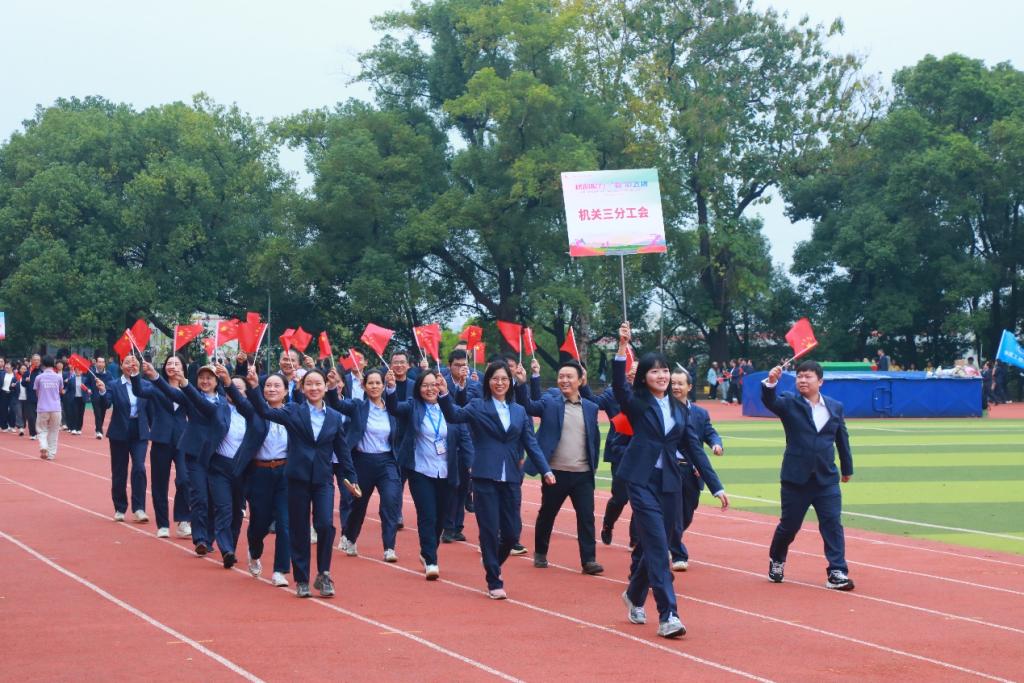 11月6日,我校第九届教职工趣味运动会在学校运动场成功举行。本届运动会以“秋韵聚力·‘物’彩飞扬”为主题,设置了“鸿运彩球”“趣味接力”“拔河比赛”“环环相扣”4个团体项目,吸引了全校各分工会教职工的积极参与。