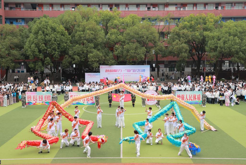 开幕式上,节目精彩纷呈,气氛热烈高昂。威风锣鼓中的舞龙表演气势恢宏,展现了传统文化的魅力与物院学子的文化自信;青春洋溢的排舞与动感十足的街舞先后登场,瞬间点燃全场热情。各学院运动员方阵精神抖擞、步伐铿锵、口号嘹亮,展现出物院师生昂扬向上的精神风貌。