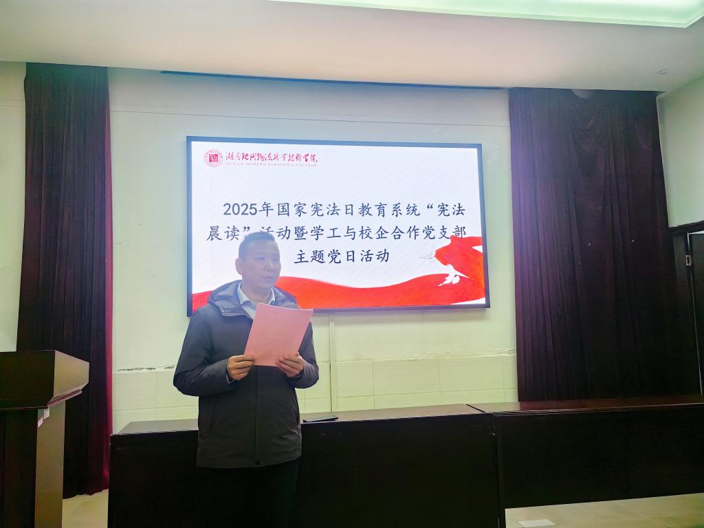 为大力弘扬宪法精神,强化党员教师的法治观念与职业道德素养,12月4日上午,学工与校企合作党支部在图书馆学术报告厅,开展“学习宪法尊崇宪法,践行准则筑牢师魂”主题党日活动。校党委委员、副校长肖勇出席活动,活动由党支部书记赵建军主持。
