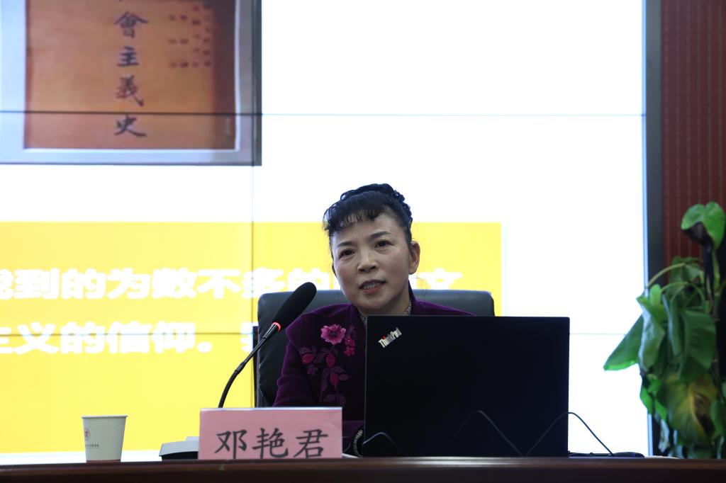 宣讲会上,邓艳君以其深厚的理论素养和富有感染力的语言艺术,通过“信仰的追寻”“信仰的捍卫”“信仰的坚守”三个篇章,系统梳理了中国共产党人精神谱系的历史脉络与时代价值。她以湖湘红色文化为切入点,运用大量珍贵史料和生动案例,将抽象的理论具象化,使百年党史中蕴含的精神力量跃然眼前。在宣讲中,邓艳君时而引经据典,时而娓娓道来,带领现场师生完成了一次穿越时空的精神之旅。