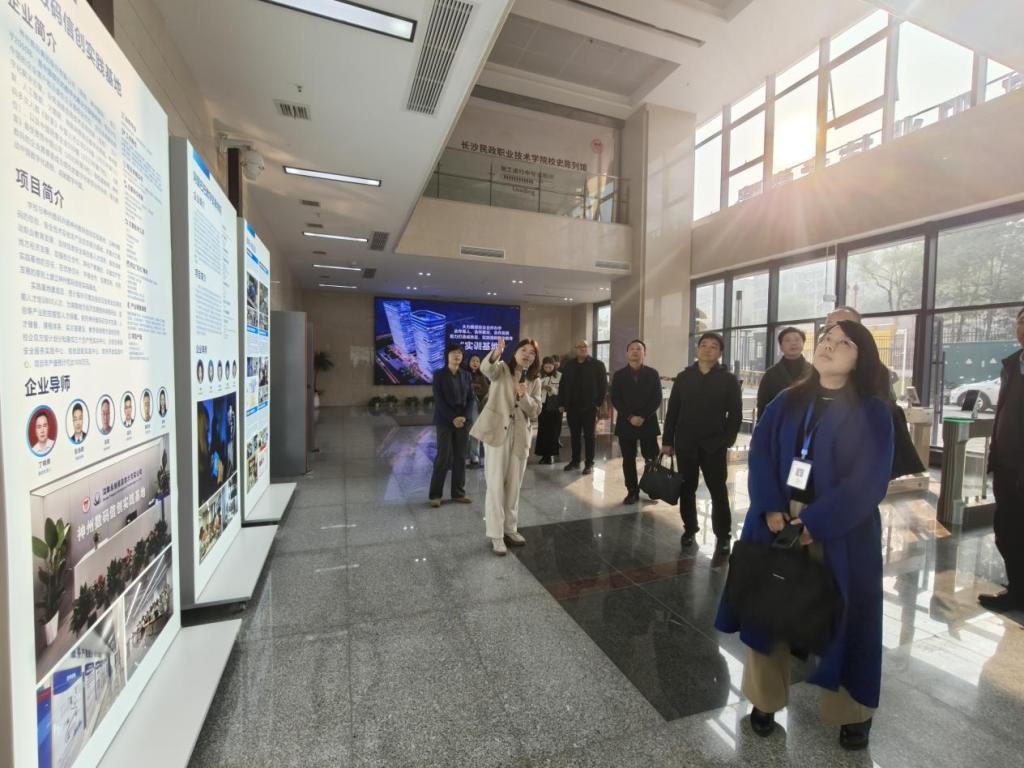 在民政职院校企合作处老师的陪同下,我校调研团首先实地参访了位于学校产教融合大楼内的金蝶企业数字化产业学院、新华三人工智能产业学院、神州数码信创实践基地、阿里巴巴数字贸易学院以及九礼数字生命文化产教融合基地等多个特色产教融合平台。通过现场观摩与深入讲解,调研团成员直观感受了民政职院在校企协同育人、实践教学平台建设方面的丰硕成果与创新模式,对其将真实产业环境、先进技术标准与前沿项目融入人才培养全过程的实践留下了深刻印象。