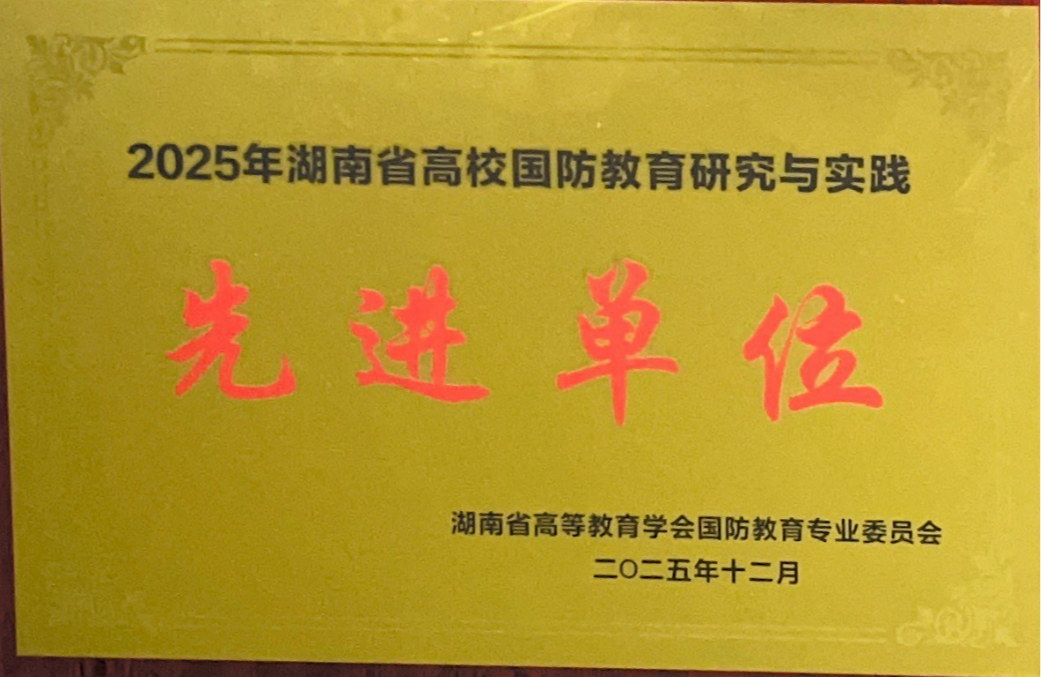 在2025年度湖南省高校国防教育研究与实践先进单位评选中,我校凭借扎实的国防教育工作和创新实践模式,荣获“国防教育研究与实践先进单位”称号,成为全省高职高专组10所获此殊荣的高校之一。