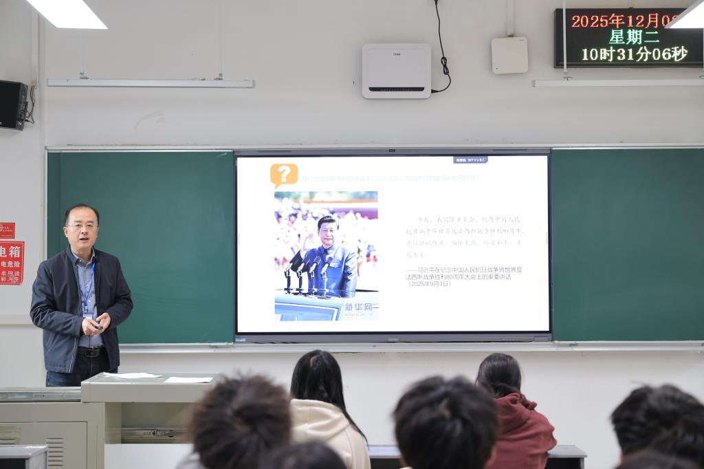 为深入落实立德树人根本任务,强化思政课铸魂育人功能,近日,我校党委书记龙吟、党委副书记邓剑波等党委班子成员走进“形势与政策”课课堂,以《纪念抗战胜利坚定民族信念》为主题,结合丰富史料、鲜活案例与现实热点,带领同学们回溯烽火岁月,感悟抗战精神,凝聚奋进力量。