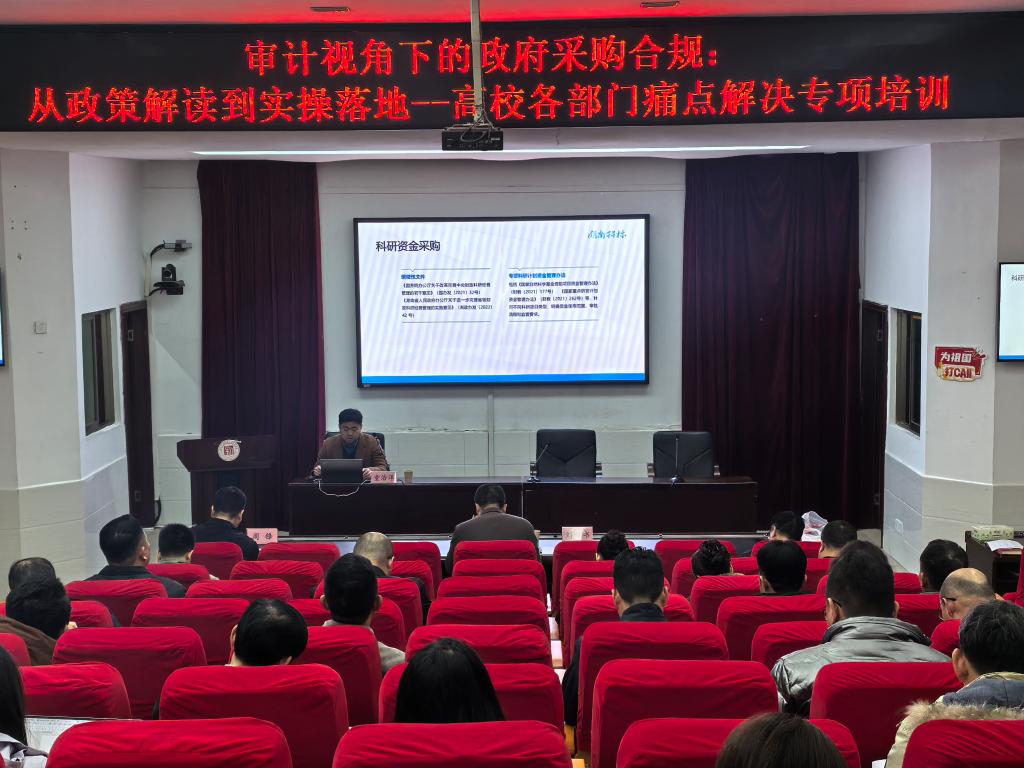 为进一步规范学校政府采购行为,提升采购工作的专业化、法治化水平,强化全过程风险防控能力,12月23日,我校举办了“审计视角下政府采购合规管理与风险防控”专题培训。学校各部门、二级学院负责人及采购经办同志参加了此次培训。学校党委委员、纪委书记刘贵书出席培训活动,充分彰显了学校党委、纪委对本次培训的高度重视和大力支持。