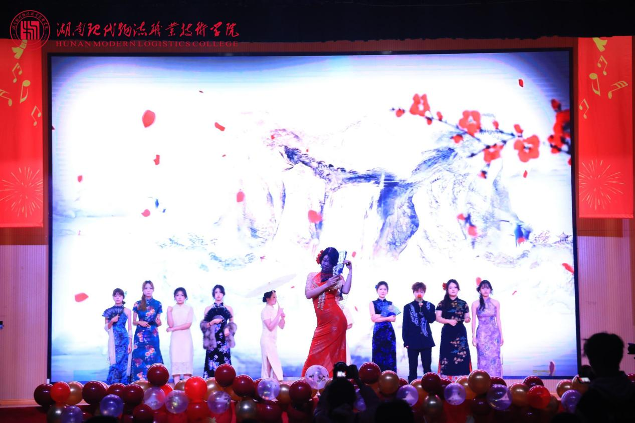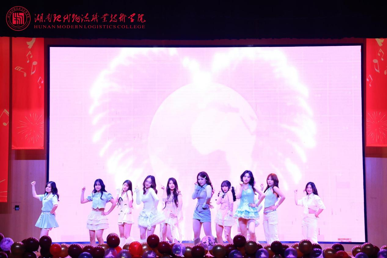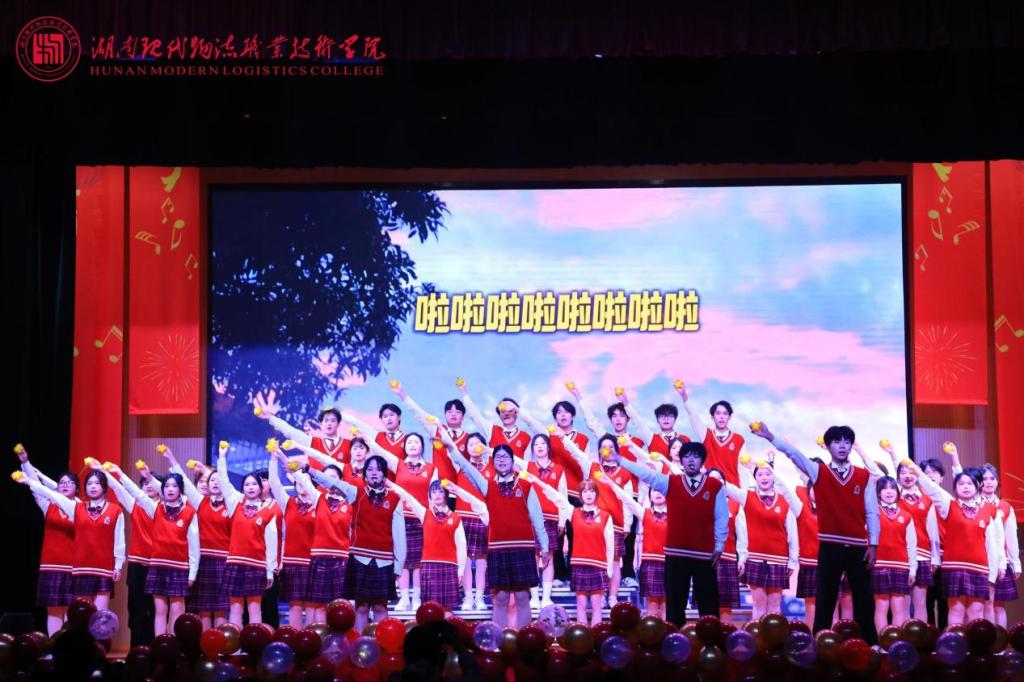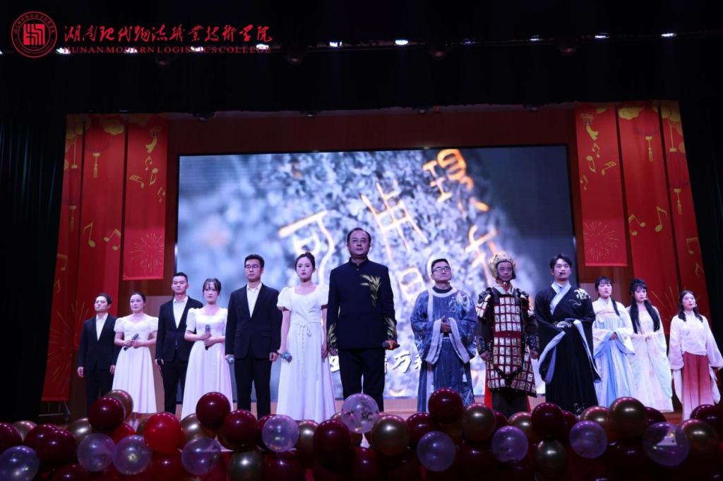 第二篇章“青葱岁月·展风华”洋溢青春活力。物流工程学院乐队演唱《第一天》,旋律轻快、元气拉满,唱出少年逐梦的热忱;物流商学院与舞蹈协会联合带来的流行舞串烧《追光吉舞企划》,舞步整齐、气场全开,尽显少女们的灵动风采;纪检监察处情景朗诵《时空回响·清风致远》以“清风起,明月照,此心向廉行正道”开篇,以古今对话的创新形式生动诠释立德树人的清廉底色;物流管理学院《踏歌·逐光行》歌声清脆,裹挟着彝族火把节的热烈韵律,银饰轻响、裙摆飞扬间,浓郁的民族风情扑面而来。