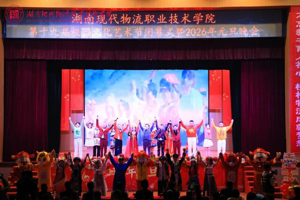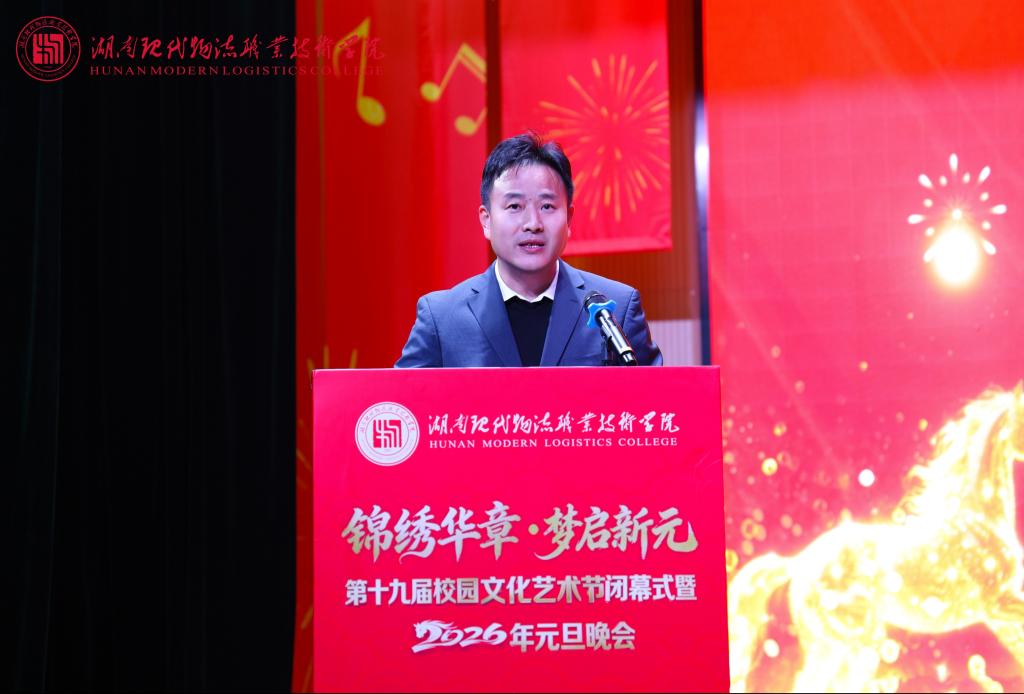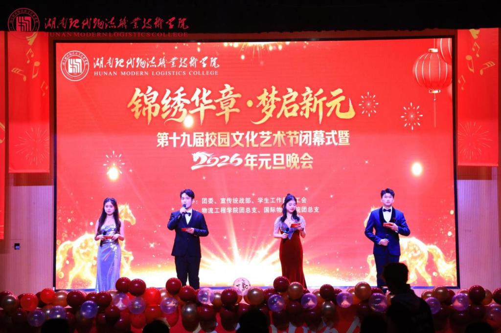 12月30日晚上,我校“锦绣华章 梦启新元”第十九届校园文化艺术节闭幕式暨元旦晚会在体艺馆圆满举行。学校党委书记龙吟,党委副书记邓剑波,党委委员、副校长罗勇,党委委员、纪委书记刘贵书,党委委员、副校长肖勇,党委委员、副校长邢伟,党委委员、组织人事部部长梁飞、正处级干部陈建华以及1400余名在校师生齐聚一堂。本次晚会由团委、宣传统战部、学生工作部、工会主办,物流工程学院团总支、国际物流学院团总支承办。
