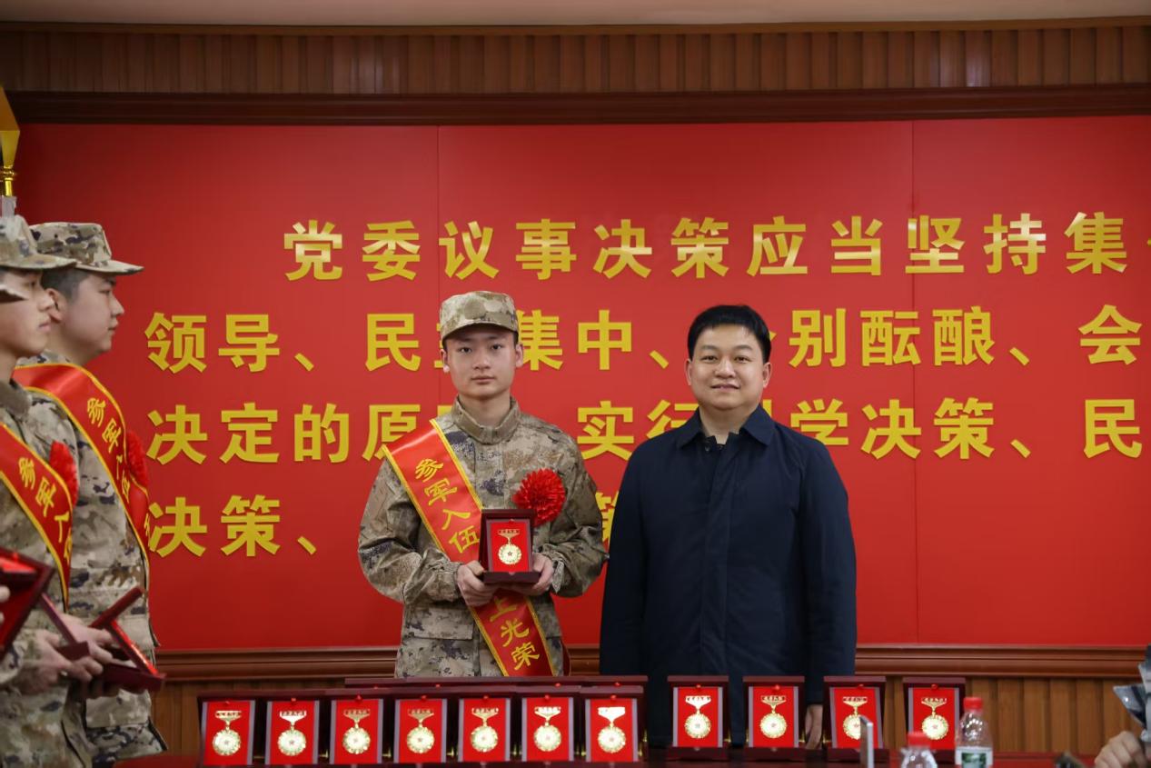 肖勇向全体入伍学生赠送了入伍纪念章,并代表学校讲话。他首先向光荣入伍的同学们表示热烈的祝贺,并对长期关心支持学校国防教育和征兵工作的芙蓉区人民武装部等单位表示衷心感谢。肖勇向全体入伍学子提出四点殷切期望:一要铸魂立心守忠诚,坚定理想信念,永葆爱国爱军的政治本色;二要砺能笃行练本领,勤学苦练军事技能,锻造全面过硬的综合素质;三要严守纪律保作风,恪守军队条令条例,养成令行禁止的优良作风;四要心怀感恩记家国,厚植家国情怀,勇担时代赋予的责任与使命。