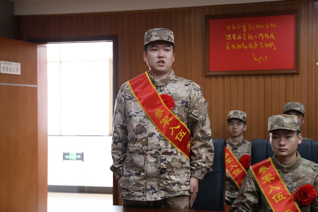 随后,入伍新兵代表作了热情洋溢的发言。他深情回顾了在校求学期间的点滴成长,特别是在芙蓉区武装部培养引导下,个人从军报国志向日益坚定的心路历程,并向母校、师长及武装部表达了由衷的感激。他代表全体即将入伍的同学庄严承诺:踏入军营后,定将坚决听从指挥,迅速适应环境,苦练本领,锤炼过硬作风,努力成为一名优秀的人民子弟兵,以优异的成绩和表现回报母校的栽培、家人的期盼和祖国的信任。