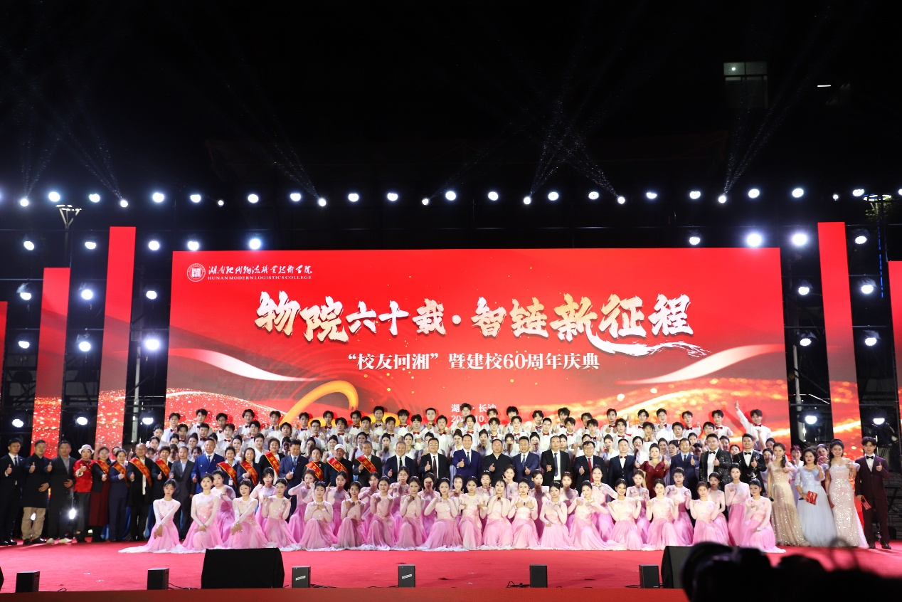 六秩春秋,弦歌不辍。10月18日,湖南现代物流职业技术学院“校友回湘”暨建校60周年庆典活动顺利举行。来自全国各地的校友、社会各界领导嘉宾与全校师生欢聚一堂,以“物院六十载·智链新征程”为主题,共同回顾学校六十载办学历程,展望新时代职业教育发展美好前景。兄弟院校代表,校企合作单位代表,退休老同志代表,属地街道、社区代表,校友代表以及师生代表等两千余人参加大会。