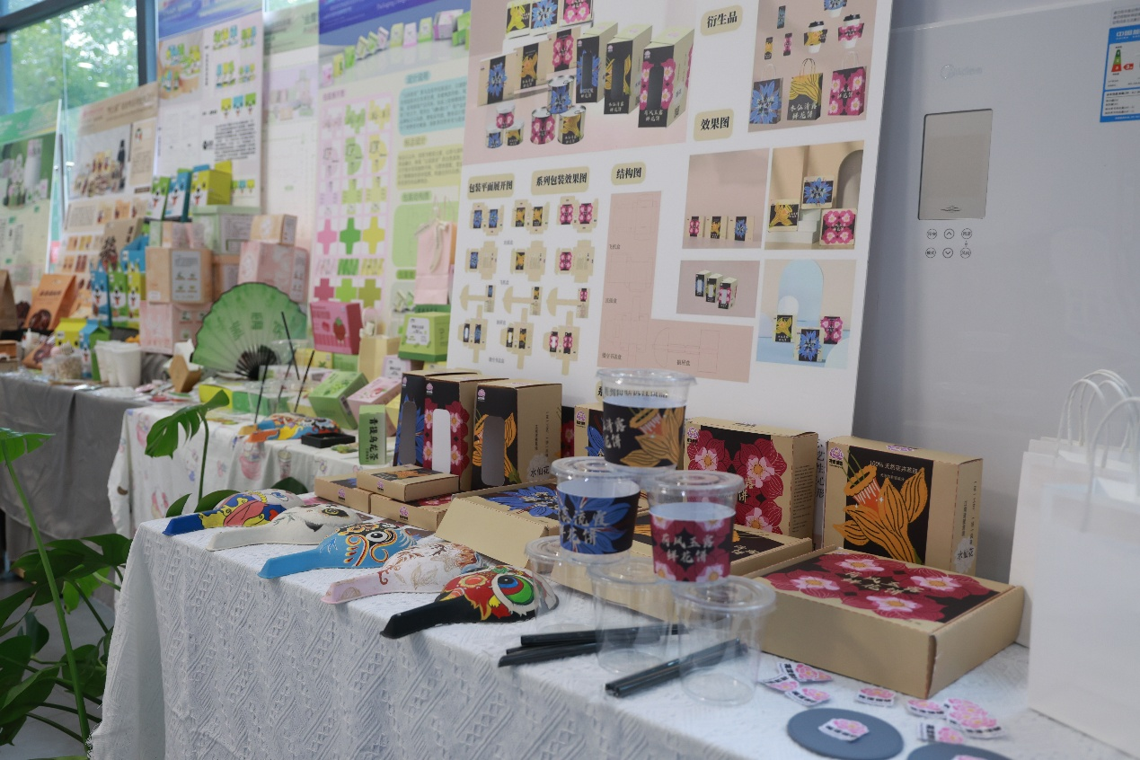 “产教融合”展区成为最大亮点之一。这里陈列着与卡普包装、长沙远古生态农业科技发展有限公司等知名企业合作的项目成果。包装专业带头人向明月教授自豪地说:“我们坚持把企业真实项目搬进课堂,让学生在设计过程中理解市场需求、成本控制和工艺实现,真正实现‘毕业即上岗’。”