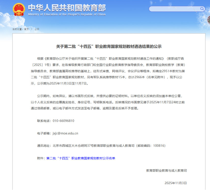 作为职业教育的“金字教科书”“十四五”职业教育国家规划教材经省级推荐、专家评审等多道严格程序遴选产生,代表着全国职业教育教材在科学性、先进性、适用性方面的最高水平。此次冯梅教授主编教材的入选,是教育部对该校教材建设质量的权威认证,也是对编写团队深耕职教、服务产业的高度肯定。