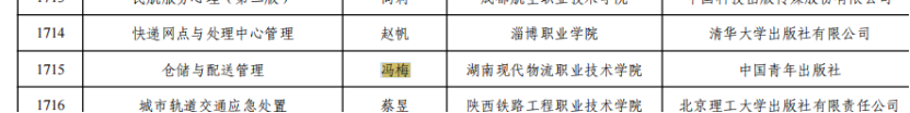 近日,教育部正式公示第二批“十四五”职业教育国家规划教材遴选结果,湖南现代物流职业技术学院物流管理学院冯梅教授主编的《仓储与配送管理》教材成功入选,标志着该校在物流类专业教材建设领域实现国家级规划教材的重要突破,展现了学校对接产业需求、深耕职业教育的坚实成果。