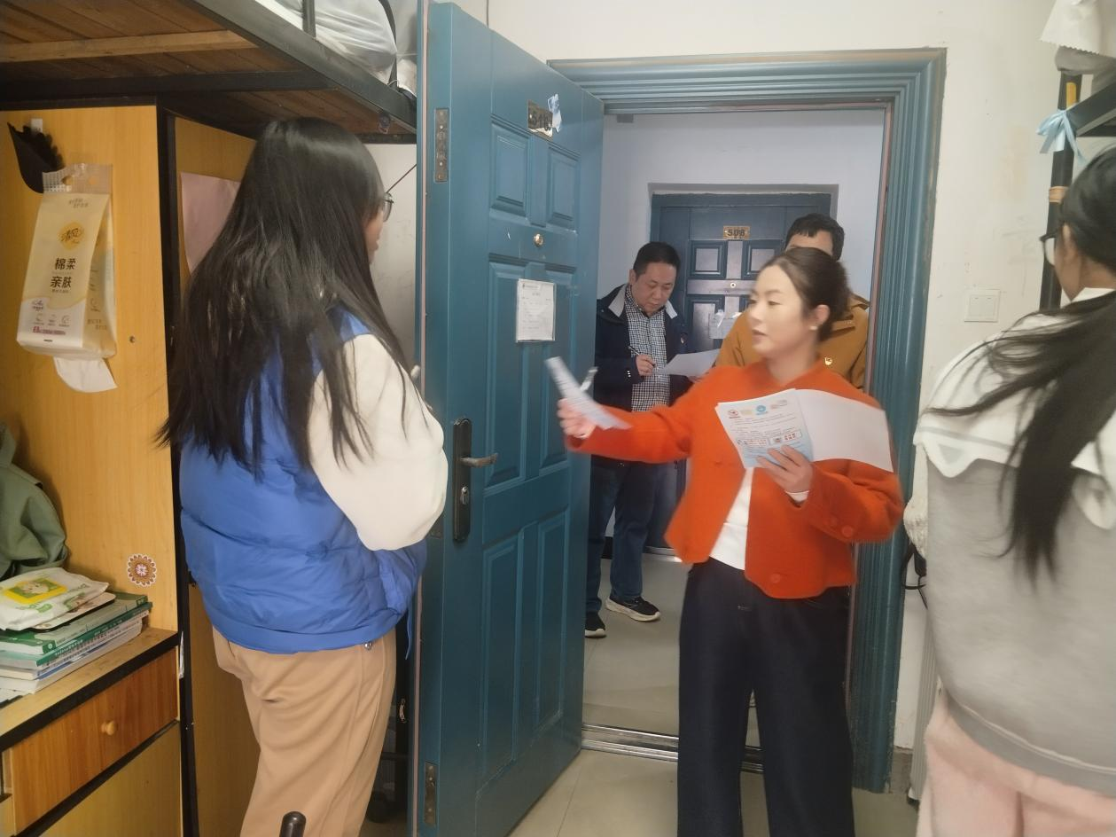 活动中,学院党员教师、入党积极分子及学生干部组成多个走访小组,深入学生寝室,围绕思想动态、学业进展与生活需求展开交流,倾听学生心声,传递组织关怀。结合冬季校园安全重点,党员们还现场开展了防火防盗、用电安全等宣传教育,切实筑牢学生社区的安全防线。