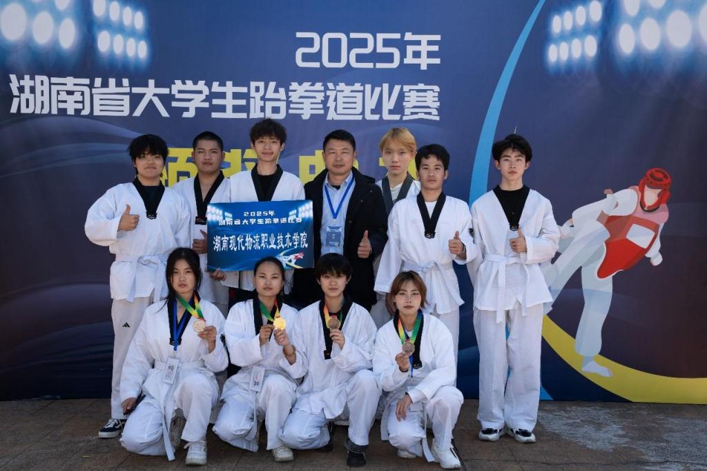 11月30日,由湖南省教育厅主办、湖南警察学院承办的2025年湖南省大学生跆拳道锦标赛在长沙圆满落幕。湖南现代物流职业技术学院跆拳道代表队在比赛中团结协作、奋勇拼搏,最终取得1金、1银、3铜、2个第五名的优异成绩,充分展现了该校学子的卓越风采和学校以体育人的扎实成果。