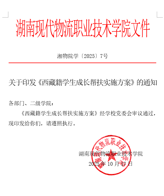 湖南现代物流职业技术学院西藏籍学生成长帮扶实施方案(节选)