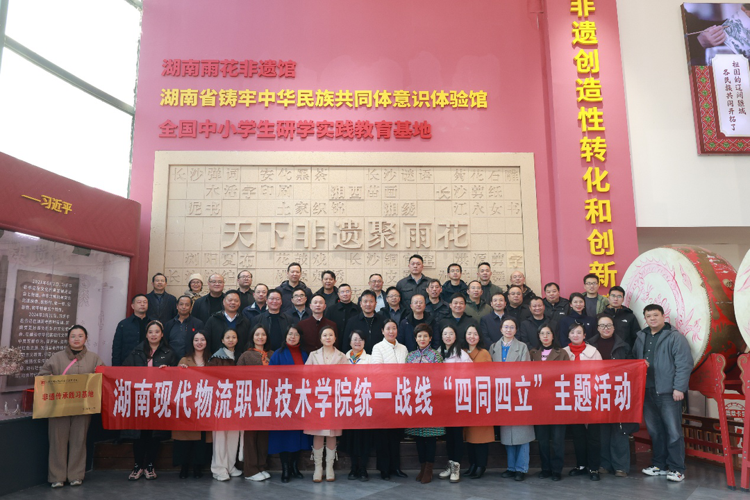 12月26日下午,湖南现代物流职业技术学院组织党委理论学习中心组(扩大)全体成员、民主党派代表、无党派人士、党外知识分子代表、少数民族教师代表、有海外留学经历教师代表等50余人,赴湖南雨花非遗馆开展“同心同德、同向同行”主题实践活动,并举行“非遗传承践习基地”授牌仪式。