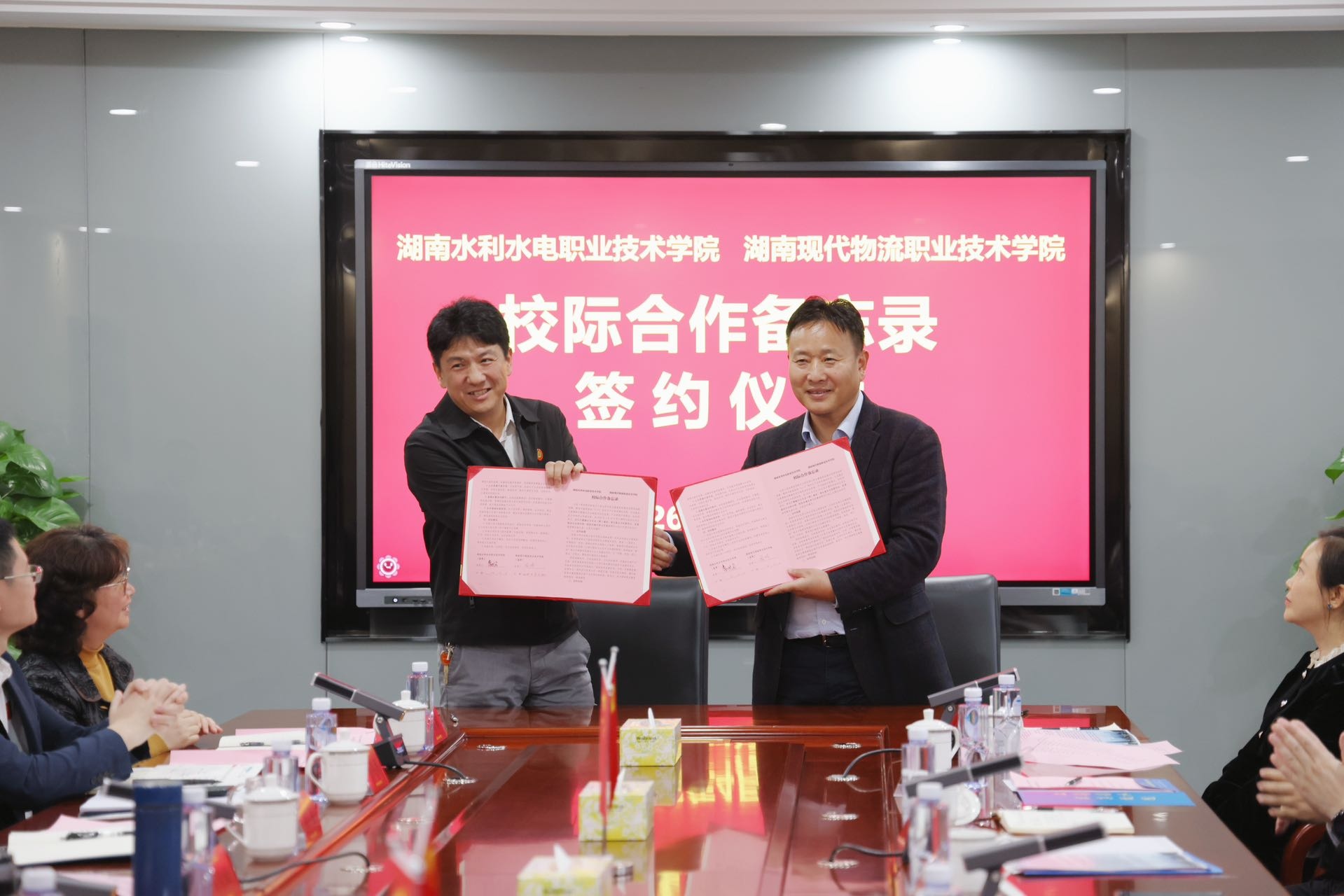 为深入贯彻国家现代职业教育体系建设改革意见精神,精准对接湖南省“4×4”现代化产业体系,4月20日,湖南现代物流职业技术学院与湖南水利水电职业技术学院共同举行校际合作备忘录签约仪式。两校以党建为引领、以资源为纽带、以育人为核心,开启全方位、深层次、常态化校际合作新篇章,共同打造湖南职业教育校际协同、产教融合的创新样本。