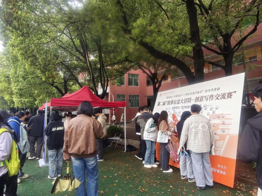 4月22日,湖南现代物流职业技术学院“楚怡润心 书香致远”读书月系列活动之第二届故事盲盒大冒险・创意写作交流赛在教学楼前坪顺利举办。活动以创新形式推动全民阅读走深走实,营造浓郁书香校园氛围。