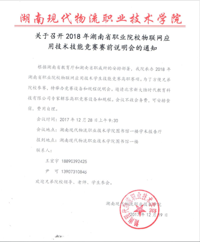 关于召开2018年湖南省职业院校物联网应用技术技能竞赛赛前说明会的通知