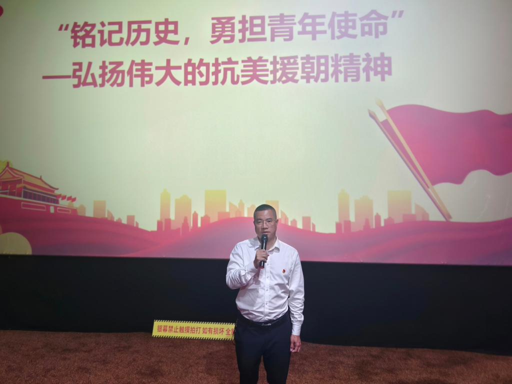 活动伊始,党总支书记蒋兴君作动员讲话。他强调,在新时代的长征路上,回望抗美援朝那段保家卫国的峥嵘岁月,具有极其重要的现实意义。他要求全体同志通过本次观影,深刻感悟革命先辈们不畏强敌、英勇斗争的钢铁意志和坚定信念,从中汲取精神力量,不忘初心、牢记使命,将观影带来的深刻感受转化为立足岗位、奋发作为的实际行动,为学院和学校的高质量发展贡献智慧与力量。