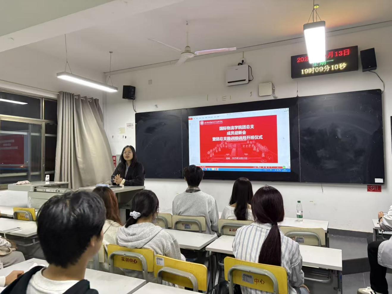 为进一步增强团总支组织凝聚力,提升新一届成员的综合素养与工作能力,10月13日晚7时,国际物流学院团总支在教学楼309举行2025级团总支成员迎新会暨团总支晚训培训月开班仪式。学院团总支书记潘子曦老师、团总支核心成员及新加入的全体干事参加本次活动。