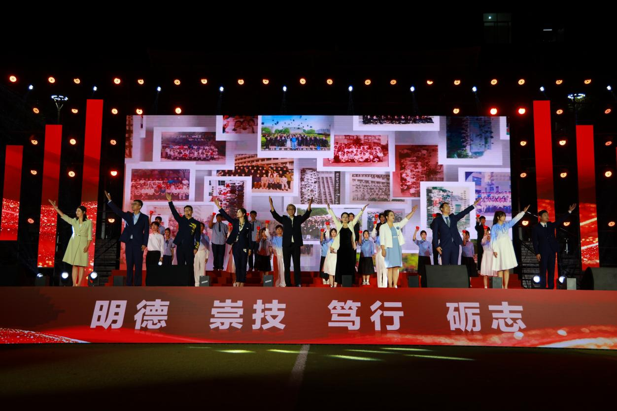 节目以“萌芽、坚守、赓续、永恒”为脉络,融合叙事、朗诵、舞台演绎于一体,生动呈现学校六十年办学历程。第一幕“萌芽·初心如炬”,校友代表深情追忆1965年创校之艰与迁址之路,“六十年,乙巳之约,山海不忘”道尽岁月情深;第二幕“坚守·春风化雨”,教师、后勤与学管代表依次登台,以粉笔白发、深夜灯影,配以《奉献》旋律,诠释“立德树人六十载”的无声坚守;第三幕“赓续·青春启航”,在流动光影与轻快节奏中,新老学子于智慧物流实训与技能赛场挥洒朝气,誓要“续写物流新篇”;第四幕“永恒·薪火璀璨”,全体演员齐聚阶前,“明德崇技,笃行砺志”的校训与“续写百年华章”的誓言交相回荡,校徽与“60”字样交相辉映,《我爱你中国》激昂奏响,将晚会推向高潮。