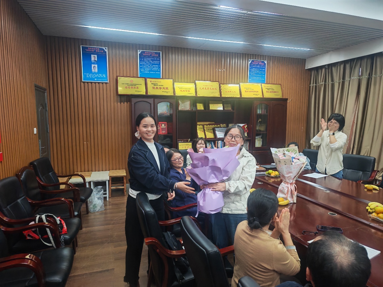 李意兰老师在荣休感言中眼含热泪,衷心感谢学校与同事长期以来的支持。她动情地说:“教育是我一生热爱的事业,学生的成长是我最大的幸福。退休后,我仍会心系学校,祝愿每一位师生前程似锦。”随后,青年教师徐蝴蝶为李老师献上鲜花,象征教育精神的接续与传承。