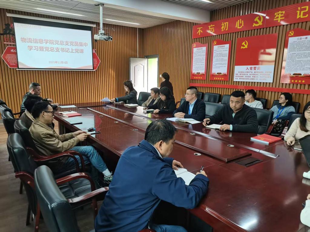 为深入学习贯彻党的二十届四中全会精神,全面落实《中国共产党思想政治工作条例》有关要求,推动学院思想政治工作高质量发展,11月4日下午,物流信息学院党总支在崇技楼305教室举行党员集中学习暨党总支书记讲专题党课活动。学院全体党员教师参加学习,党总支书记蒋兴君主持活动。