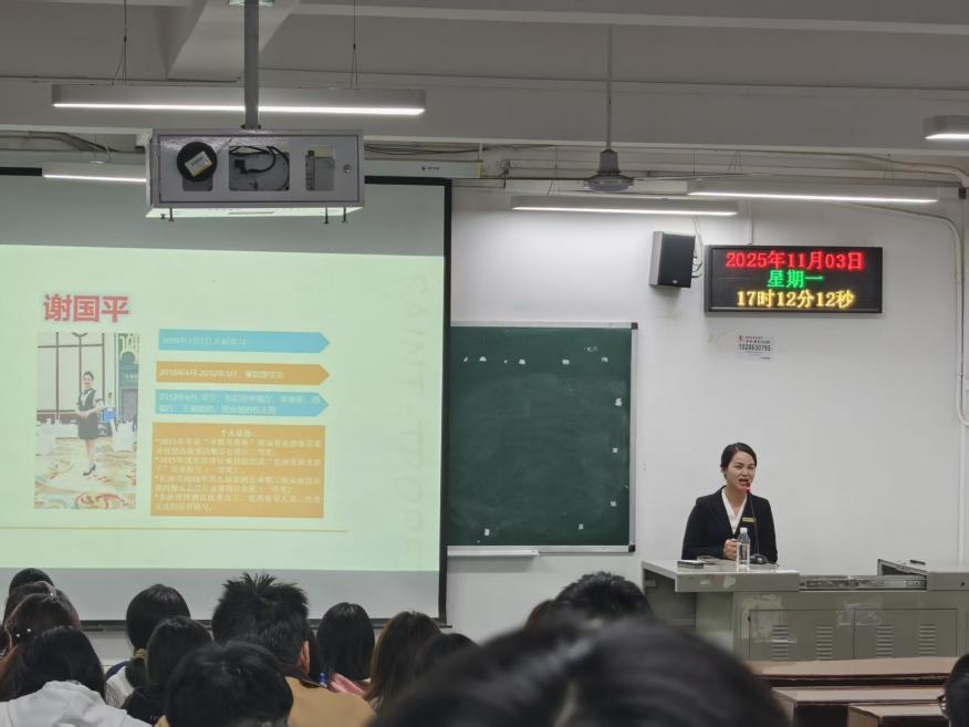 11月3日,国际物流学院酒店管理与数字化运营专业课迎来了两位特殊的企业导师——湖南圣爵菲斯大酒店的人力资源部经理李玲西子和宴会部经理谢国平。她们以高星级酒店实战管理为主题,为全体专业课学生带来一场案例鲜活、干货密集的沉浸式教学,用一线经验打破理论与实践的壁垒,让课堂成为连接校园与职场的桥梁。