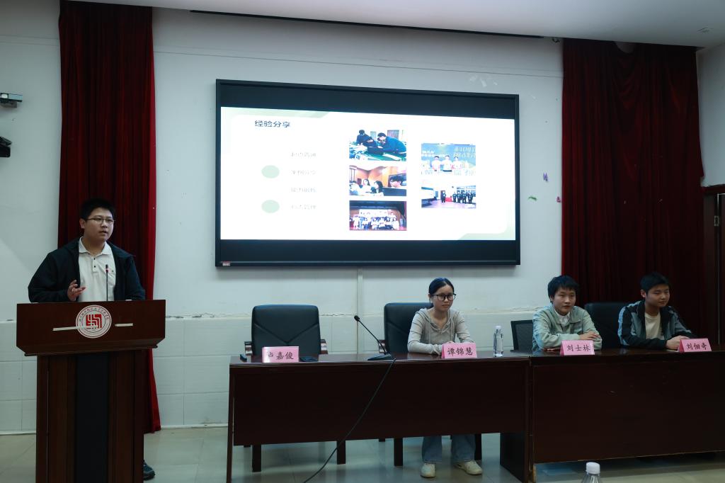 在优秀学长分享环节,物流与供应链赛道世界争夺赛银奖获得团队上台交流。他们结合在备赛过程中的难忘经历,讲述团队成果与收获,分享攻克技术难题、协调时间分工的经验,谈及竞赛带来的专业能力提升与视野拓展等,真挚感受引发在场学生强烈共鸣,让大家切实感受到竞赛魅力。