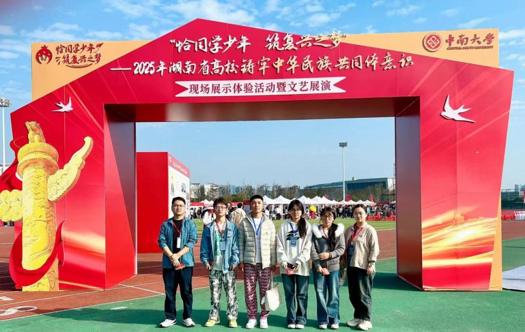 为深入学习贯彻习近平总书记关于做好新时代党的统一战线工作的重要思想,全面落实省委教育工委统战部“四同四立”主题活动部署,11月5日下午,我校宣传统战部教师及辅导员带领4名少数民族学生代表,赴中南大学参加“恰同学少年,筑复兴之梦”2025年湖南省高校铸牢中华民族共同体意识现场展示体验暨文艺展演活动。
