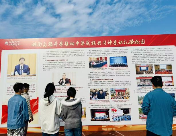 本次活动由中南大学承办,吸引了全省多所高校师生代表齐聚一堂。我校师生一行7人全程参与体验。在现场展示环节,师生通过图文史料、民族实物、互动项目等多种形式,系统了解了中华民族多元一体格局的历史脉络,深刻感受了各民族“休戚与共、荣辱与共、生死与共、命运与共”的深厚情感。文艺展演部分节目精彩纷呈,融合民族特色与时代气息,以歌舞等形式生动展现了新时代青年的文化自信与使命担当。