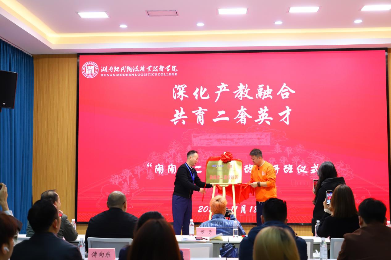 校党委委员、副校长罗勇,闹闹虎(湖南)科技有限公司董事长王青春,以及中古检测认证有限公司、潮奢虎等相关企业负责人共同出席仪式。学校校企合作与招生就业处负责人,物流商学院相关负责人、专业带头人与实战班全体同学一同见证了这一重要时刻。