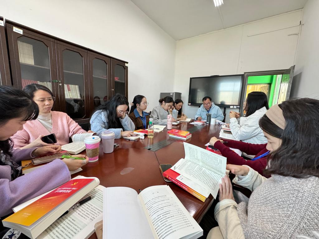 为深入学习贯彻党的二十届四中全会精神,落实《中国共产党思想政治工作条例》要求,11月21日下午,马克思主义学院党支部在党员活动室开展十一月“悟精神凝心铸魂 担使命立德树人”主题党日活动。支部全体党员教师围绕全会精神与思政工作实际展开专题学习与研讨,推动理论学习成果转化为育人实效。