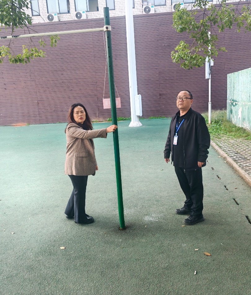为全面落实校园安全管理要求,切实保障师生运动安全与教学活动有序开展,12月1日,通识学院组织开展了月度体育场馆器材设施安全检查。本次检查由学院院长沈鹏带队,副院长赖永晖、教务办主任韩凯及器材管理员胡蕊共同参与,对体育艺术馆、室外篮球场、田径场等重点区域进行了全面排查,以“零容忍”的态度筑牢校园安全屏障。