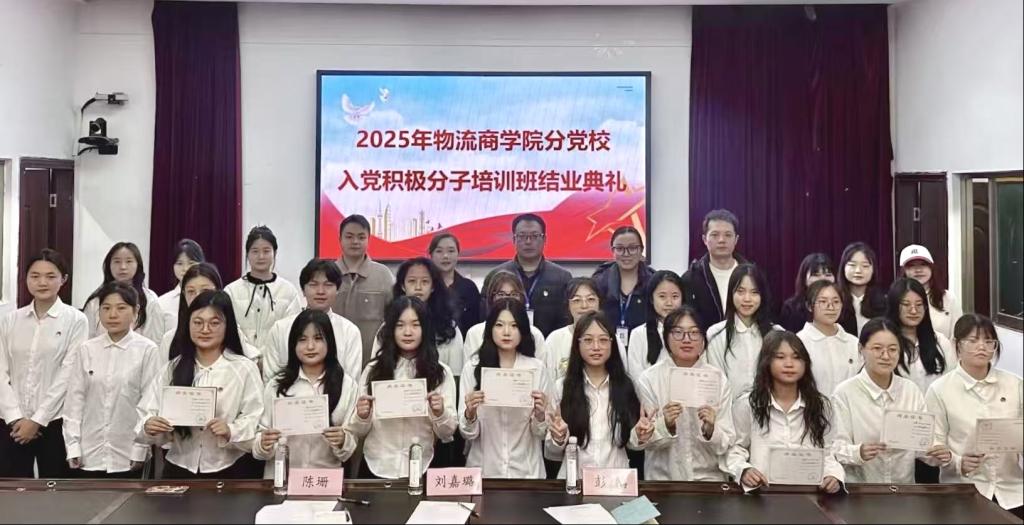 12月12日,物流商学院分党校在笃行楼学术报告厅举行2025年入党积极分子培训班结业典礼。学院党总支支委、师生联合党支部支委、分党校全体学员、学生会青马社学生干部及2025级部分班委干部参加了典礼。