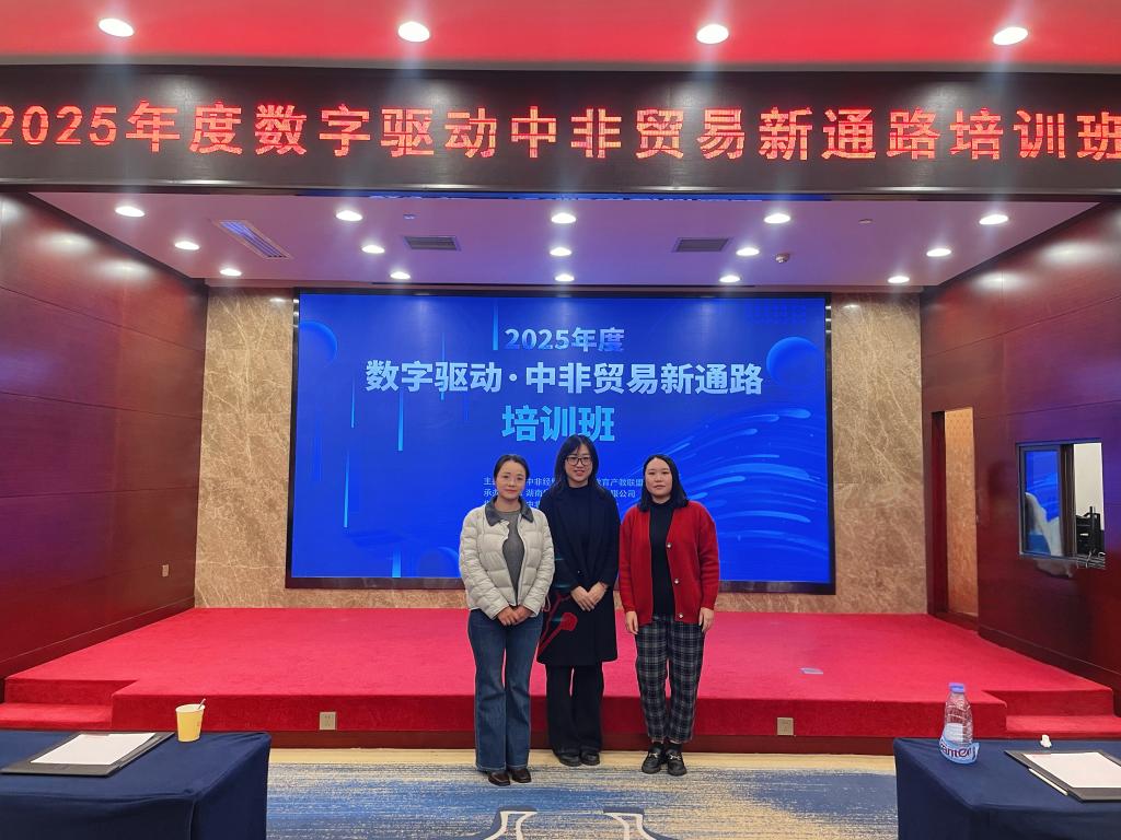 12月12日,由中非经贸合作职业教育产教联盟举办的2025年度数字驱动·中非贸易新通路培训班在湖南长沙举行。我校国际物流学院涉外服务教研室主任戴丽娟、商务英语专业负责人薛震宇、国际贸易专任教师邓群飞参加了此次培训,与来自湖南多所高校的教师及企业代表共同围绕中非经贸合作、数字贸易发展、产业出海、跨境电商等议题展开深入学习与交流。