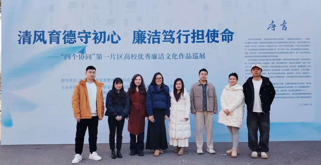 本次巡展由省纪委监委驻省教育厅纪检监察组指导,六所高校纪委联合主办,汇集六校师生创作的书法、绘画、创意设计、纪实摄影、主题海报等各类廉洁主题作品。展品主题鲜明、品类丰富、内涵厚重,全方位展现了片区高校廉政文化建设的扎实成效与师生对廉洁价值的深刻认同,既让师生在艺术熏陶中感悟廉洁初心、涵养高尚情操,更搭建起校际廉洁文化交流互鉴的优质平台,更推动廉洁理念入脑入心,警醒全体成员守底线、葆初心。