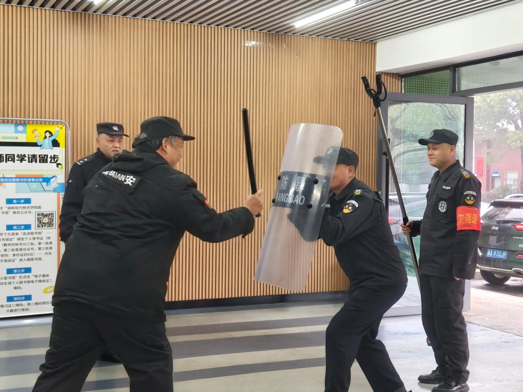 为切实保障2026年春季开学及单招考试期间校园安全稳定,积极提升应对突发暴恐事件应急处置能力,全面筑牢校园安全防线,3月9日,我校保卫部组织全体安保人员开展反恐防暴专项培训与实战演练,特邀长沙县公安局反恐大队粟志军警官亲临现场指导。
