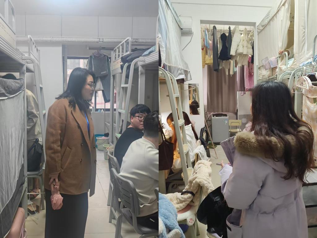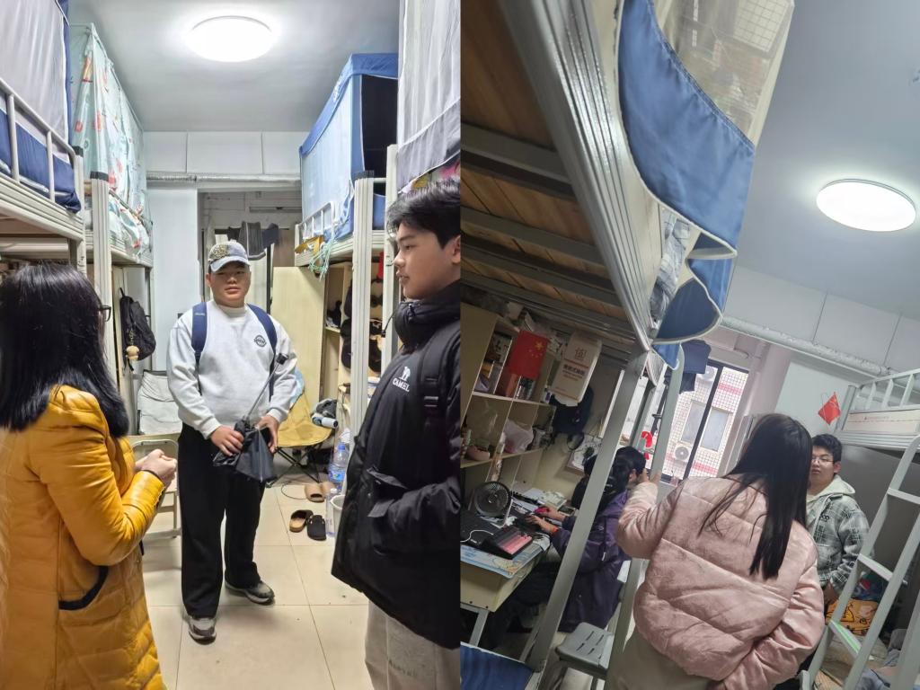 走访过程中,每走进一间寝室,老师们都会 与同学们亲切交谈。“假期过得怎么样?”“返校路上还顺利吗?”“新学期有什么计划?”“宿舍设施有没有需要报修的?”……一句句贴心的问候迅速拉近了师生距离。老师们耐心听取了同学们关于假期见闻和新学期期待的分享,鼓励大家尽快调整作息,以积极的心态和崭新的精神面貌投入到新学期的学习生活中去。