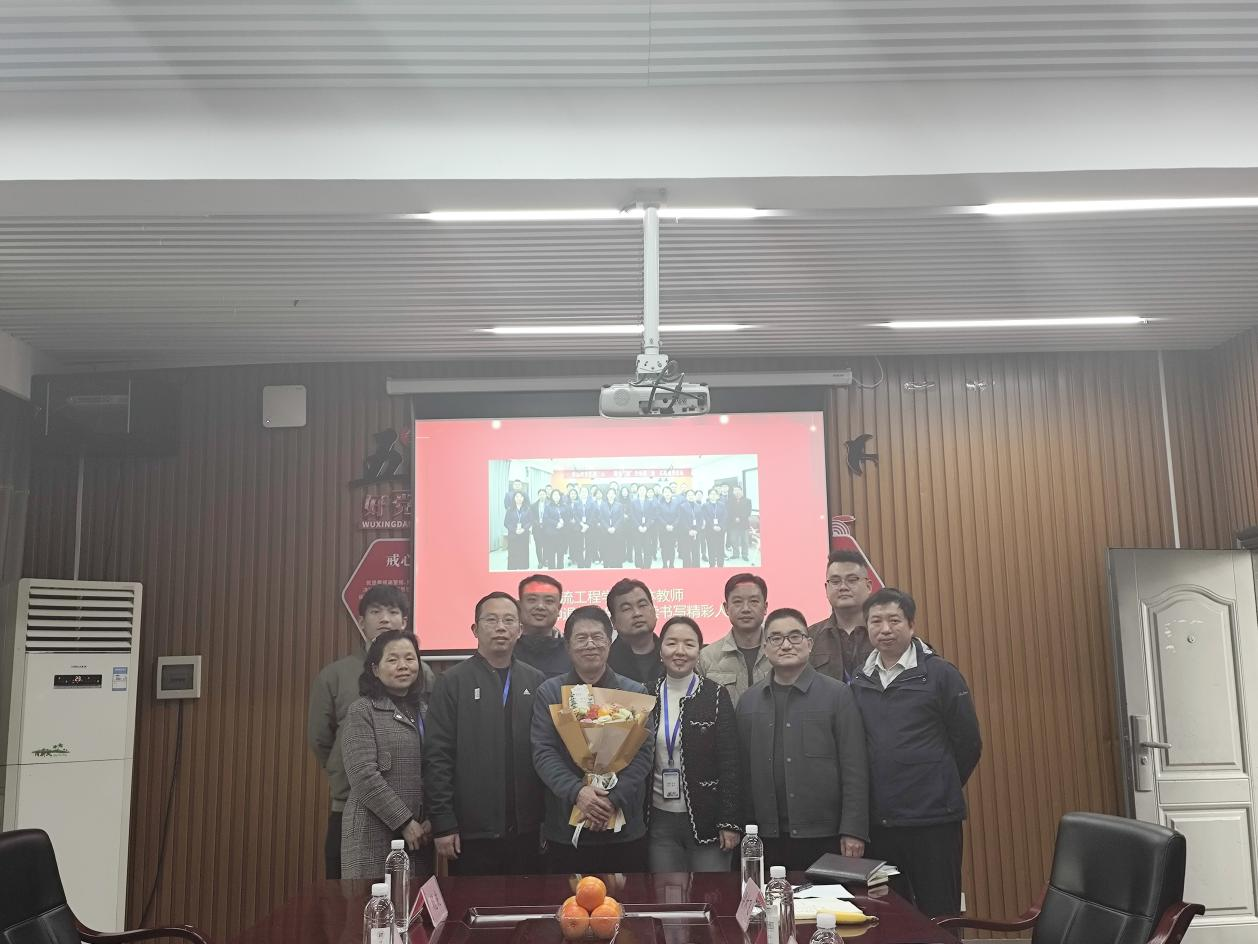 会议由物流工程学院分工会主席梁林飞主持。他提到丑振江老师始终扎根教学一线,数十年如一日坚守三尺讲台,秉持教育初心默默耕耘,以严谨的治学态度、温暖的育人情怀,成为学生成长路上的引路人,也为学院师资队伍建设与人才培养倾注了全部心血。