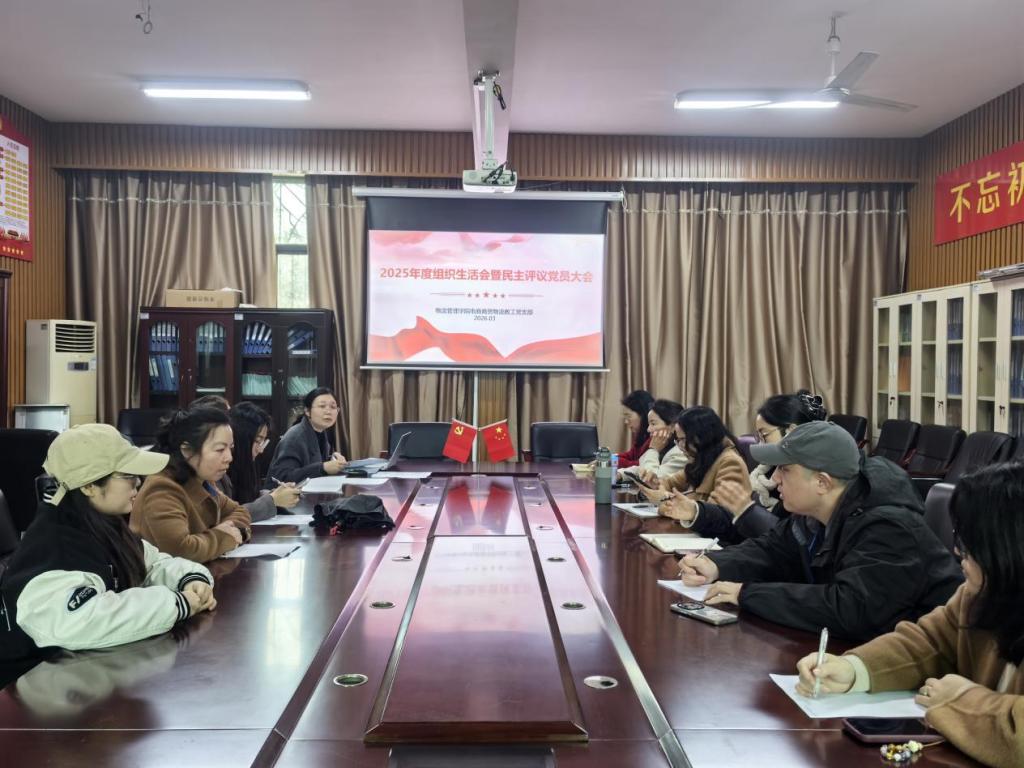 3月24日下午,物流管理学院电商商贸物流教工党支部在物流实训楼303室召开2025年度组织生活会暨民主评议党员大会。会议由党支部书记缪桂根主持,全体党员参加,学院党总支书记李志红、组织委员冯梅以普通党员身份全程参与。