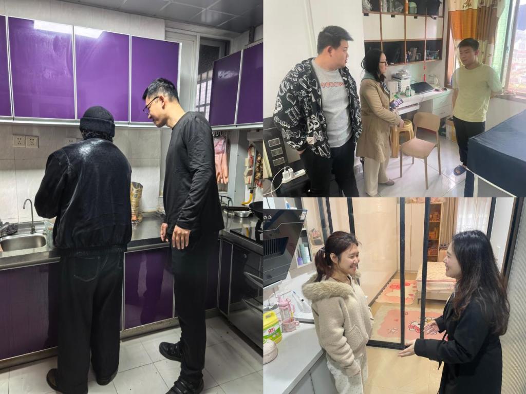实地入户过程中,走访人员一行每到一处,都细致查看学生的居住环境,重点检查了房屋结构、用电线路、消防设施、燃气使用及通风条件等关键环节。老师们与学生亲切交谈,详细询问了他们的学习情况、生活起居情况以及存在的实际困难。老师们反复叮嘱学生,校外住宿要将安全放在首位,务必增强防火、防盗、防诈骗意识,注意出行交通安全与饮食卫生,养成良好的作息习惯,保持与家长、辅导员及班委的常态化联系,遇到突发情况要第一时间向学院报告。