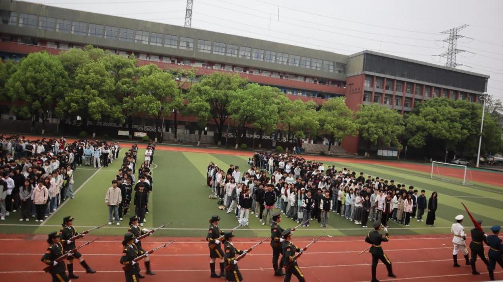 7时30分,国旗护卫队迈着铿锵有力的步伐护送国旗入场。雄壮的《义勇军进行曲》响彻全场,五星红旗冉冉升起,全体师生肃立注目、齐唱国歌,现场庄重肃穆,洋溢着浓厚的爱国情怀。