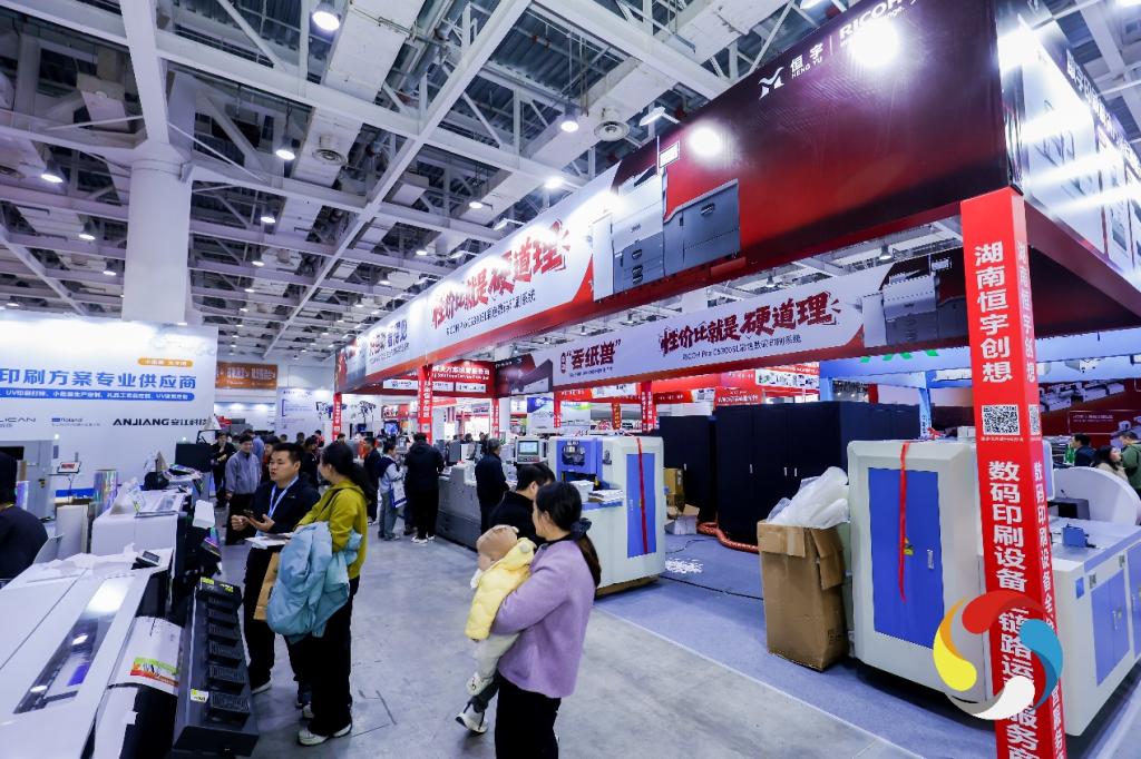 展会现场,师生们分组深入各核心展区开展参观学习。在湖南恒宇创想、理光、安江科技等头部企业展位,大家近距离观摩了理光Pro C9300i彩色数码印刷系统、智能数码印刷生产线等先进设备,企业技术人员详细讲解了设备的印刷精度、生产效率及数字化印刷流程,师生们围绕数码印刷技术在包装设计中的应用、智能设备的操作原理等问题展开深入交流,直观感受了印刷行业数字化转型的最新成果。在绿色环保包装展区,各类可降解包装材料、环保印刷工艺展品等吸引了师生们的目光,大家重点了解了绿色包装的研发方向、环保材料的性能优势,结合专业所学探讨了包装设计中绿色理念的实践路径。